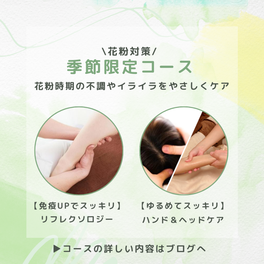 2月は冷えや忙しさで疲れが溜まりやすく、花粉の影響も出始める時期。足裏や耳、頭をやさしくほぐして自律神経を整え、重だるさをスッキリ軽やかに♪その他豊富なメニューで疲れを解消☆