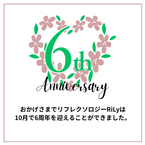 おかげさまでリフレクソロジーRiLyは10月で6周年を迎えることができました。