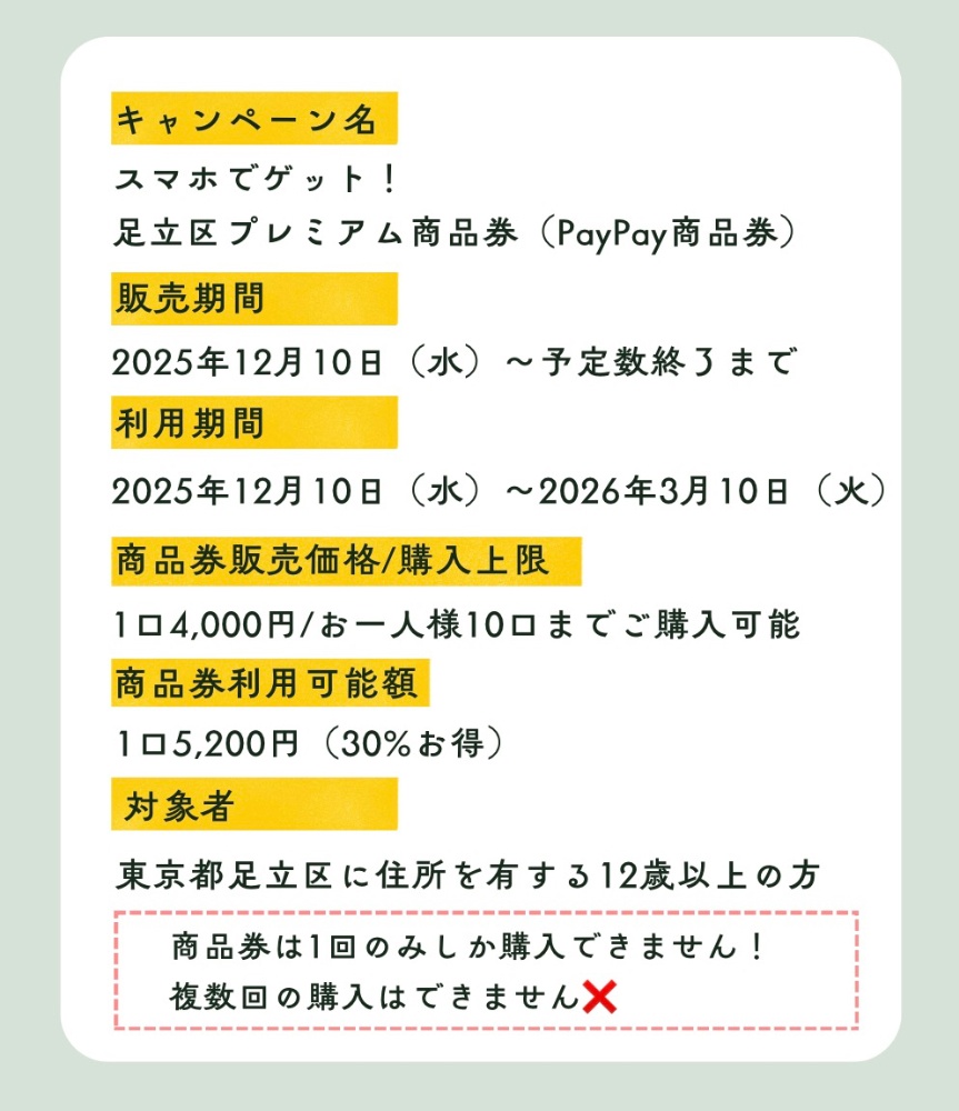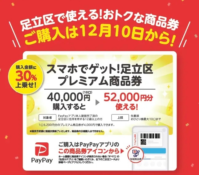12月10日(水)より、PayPayアプリから購入できる商品券『足立区プレミアム商品券』が販売開始しました!