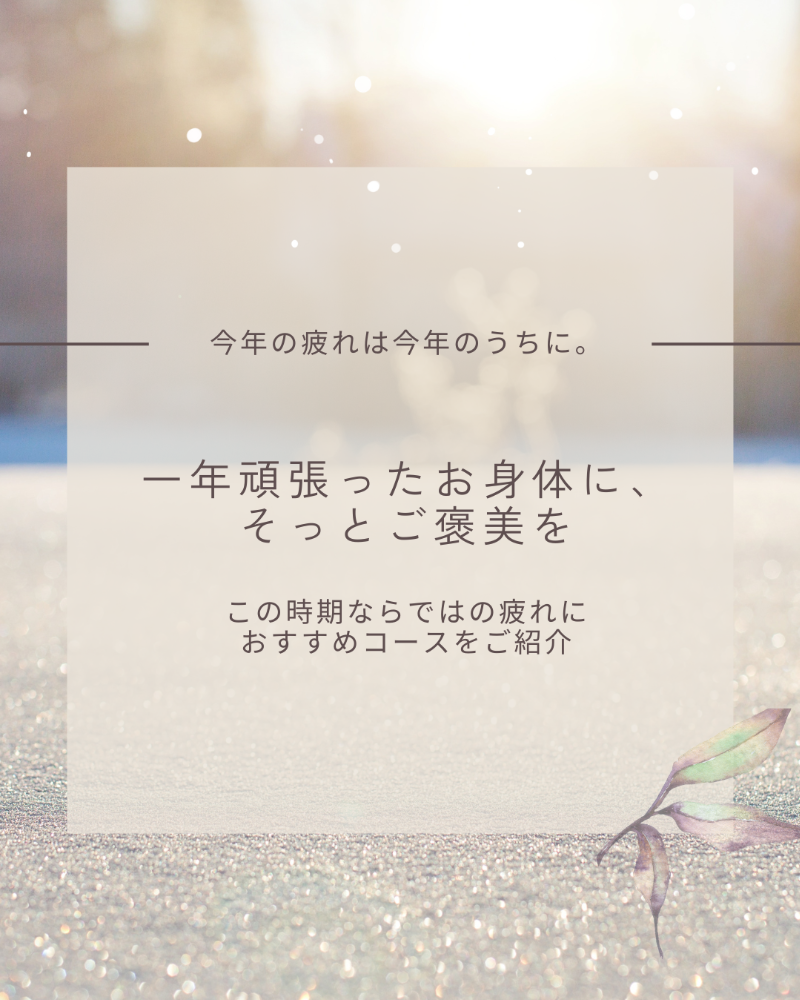 仕事納めまであと少し!頑張り続けたお身体に、ひと息を。今年の疲れは今年のうちに♪静かに、深く、ゆるめる時間をご用意しております。